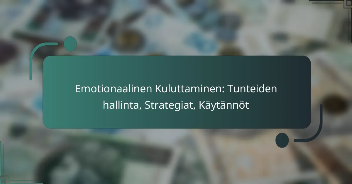 Emotionaalinen kuluttaminen viittaa ostokäyttäytymiseen, joka perustuu tunteisiin, mikä voi johtaa harkitsemattomiin ostopäätöksiin ja vaikuttaa taloudelliseen hyvinvointiin. Tunteiden hallinta on keskeinen taito, joka auttaa tunnistamaan ja säätelemään näitä tunteita, mikä puolestaan voi vähentää impulsiivista kuluttamista. Käytännön strategiat ja tietoisuuden lisääminen ovat tärkeitä askelia kohti parempaa taloudellista tilannetta.